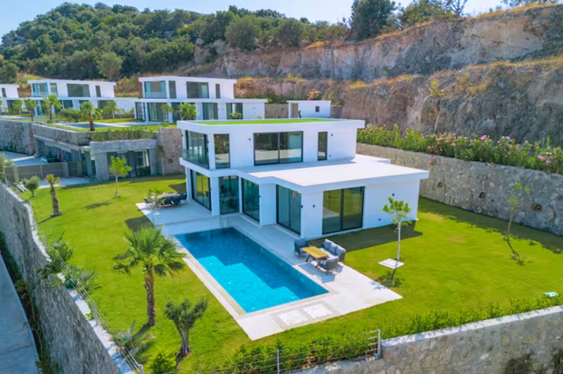 Bodrum Türkbükü ,butik site içinde herbiri büyük bahçeli ve müstakil yüzme havuzlu yeni satılık villalar.Bahçeden kesintisiz deniz manzaralı.