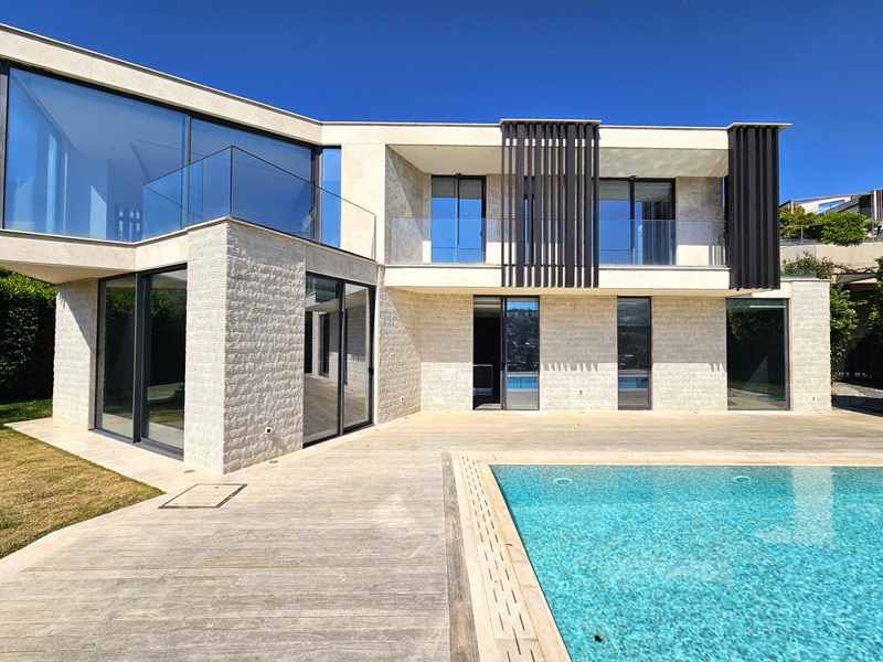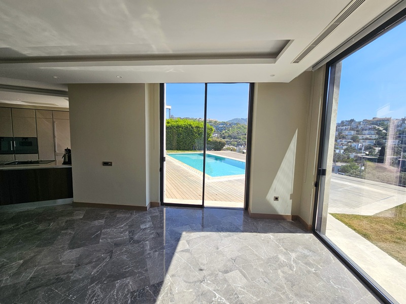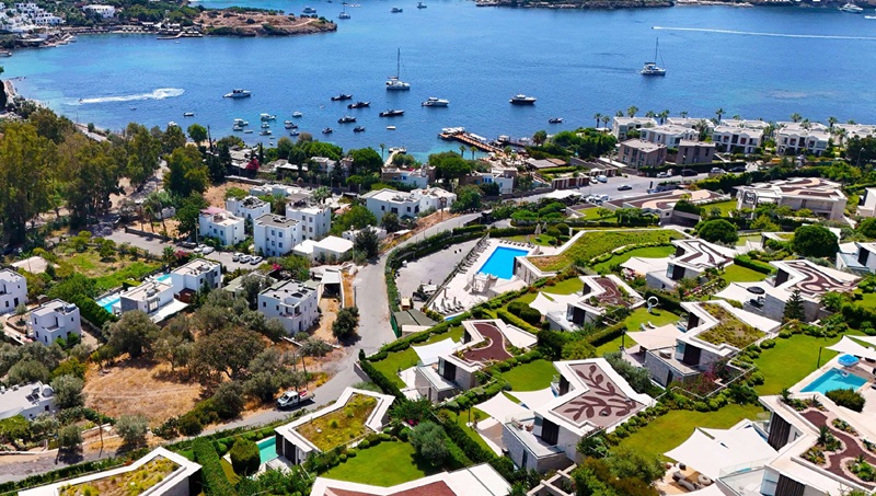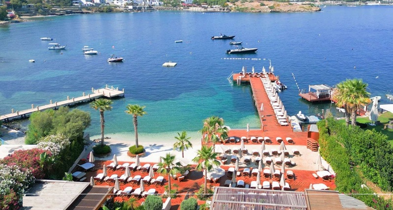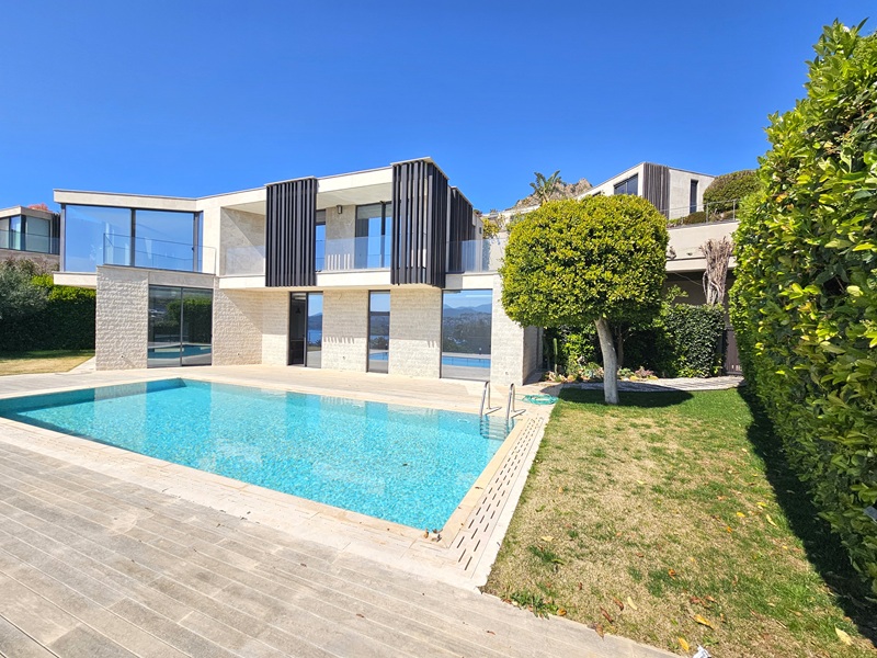 Bodrum Yalıkavak koyunda,plaj ve restoran hizmetlerine sahip denize sıfır sitede satılık müstakil yüzme havuzlu satılık villa